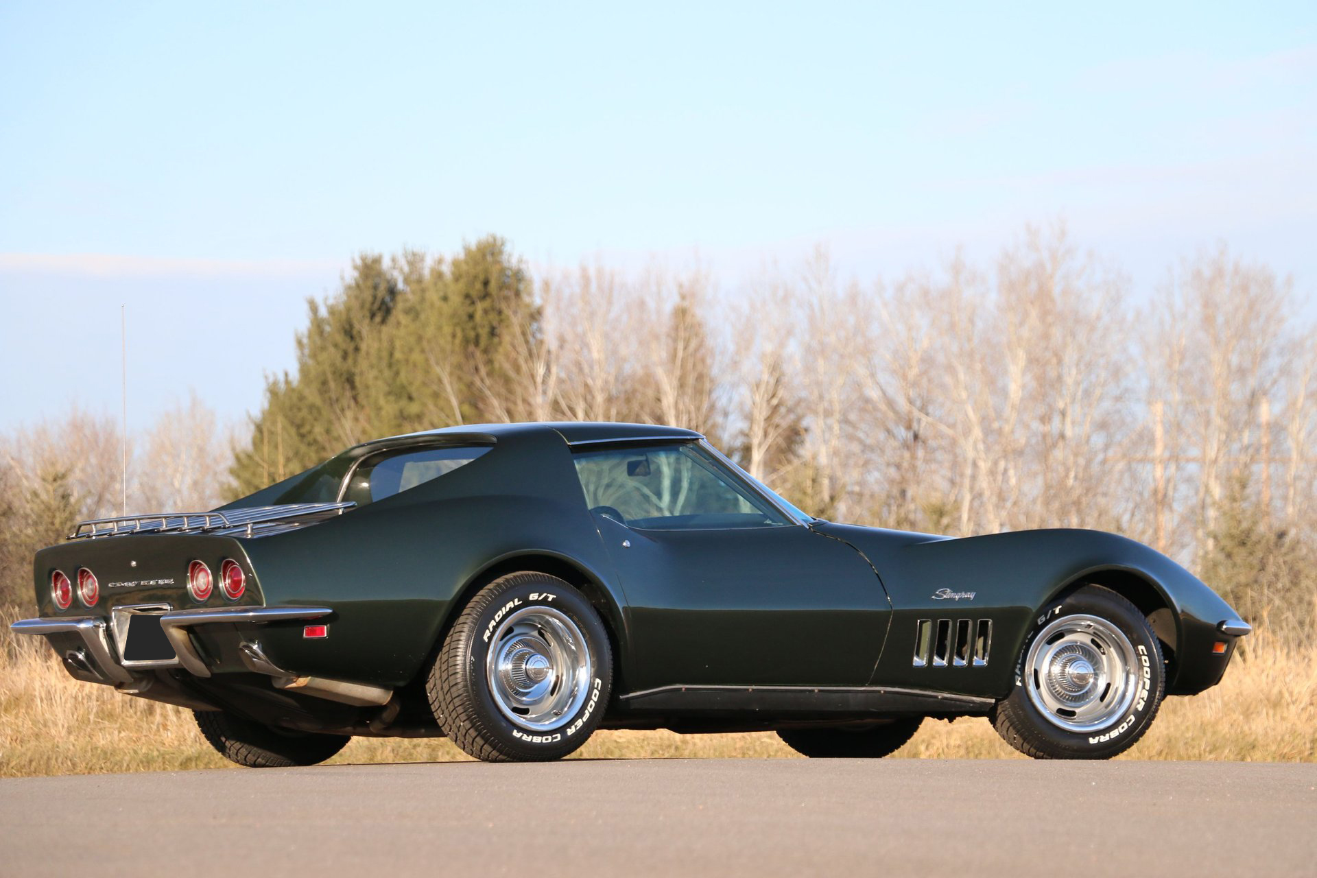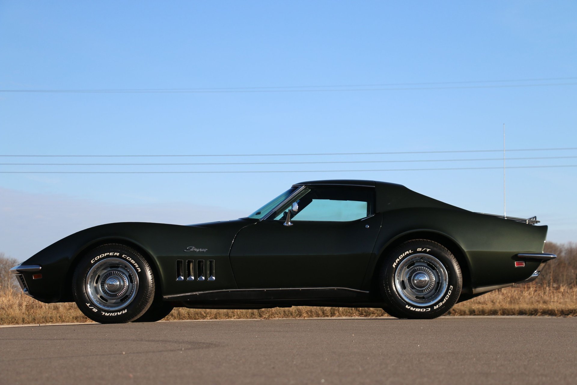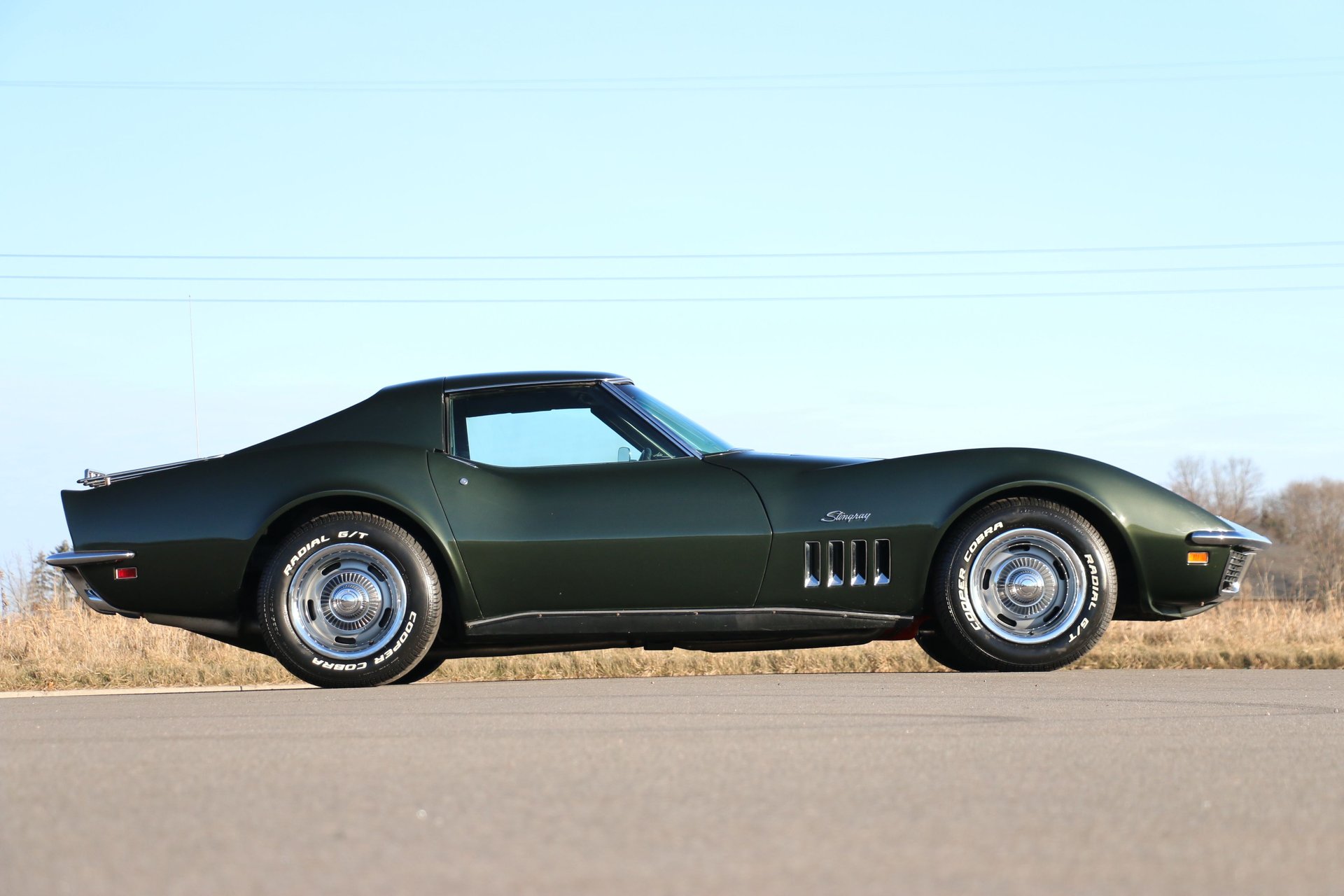 Here is a Beautiful 1969 Chevrolet Corvette Stingray Coupe. South Carolina car. Finished in the correct color of Fathom Green with Green and Saddle interior. Original small block 350 paired to the original TH400 automatic and 3:50 rear end with posi. Original A/C car, pump spins freely but is not hooked up. Power steering, power disc brakes, power windows, T-tops and removable rear window. 15'' Rally wheels with brand new Cooper Cobra radials. Great running and driving Stingray