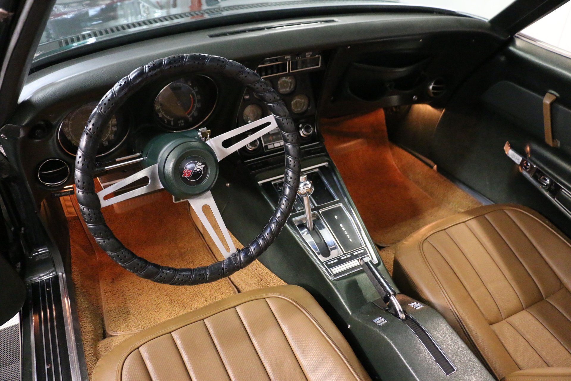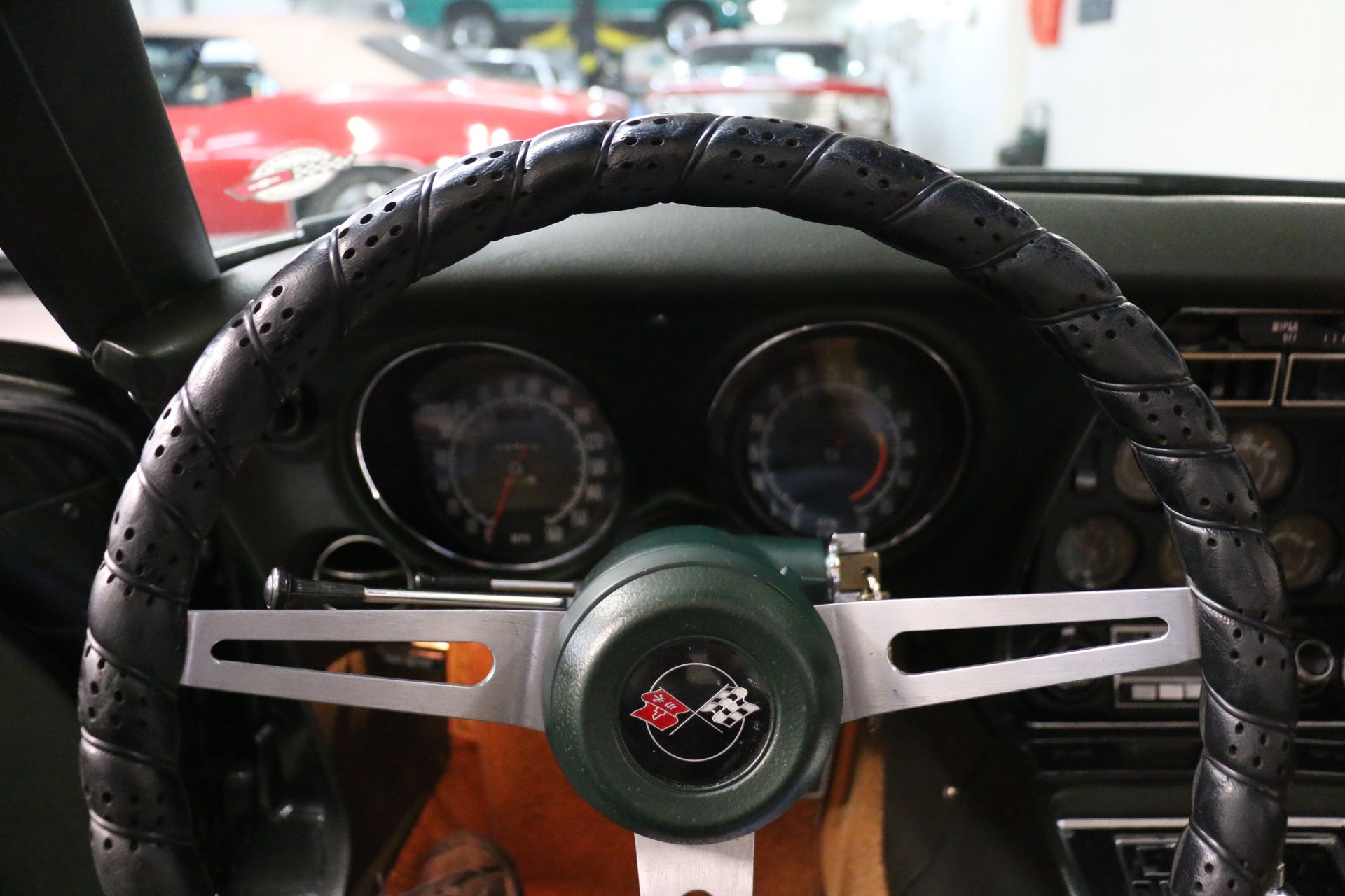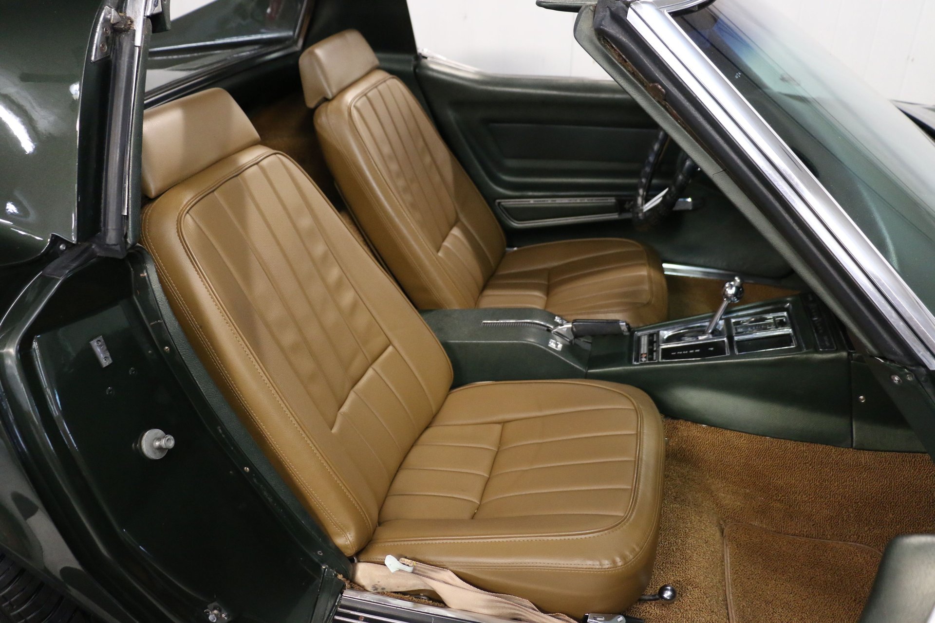 Here is a Beautiful 1969 Chevrolet Corvette Stingray Coupe. South Carolina car. Finished in the correct color of Fathom Green with Green and Saddle interior. Original small block 350 paired to the original TH400 automatic and 3:50 rear end with posi. Original A/C car, pump spins freely but is not hooked up. Power steering, power disc brakes, power windows, T-tops and removable rear window. 15'' Rally wheels with brand new Cooper Cobra radials. Great running and driving Stingray