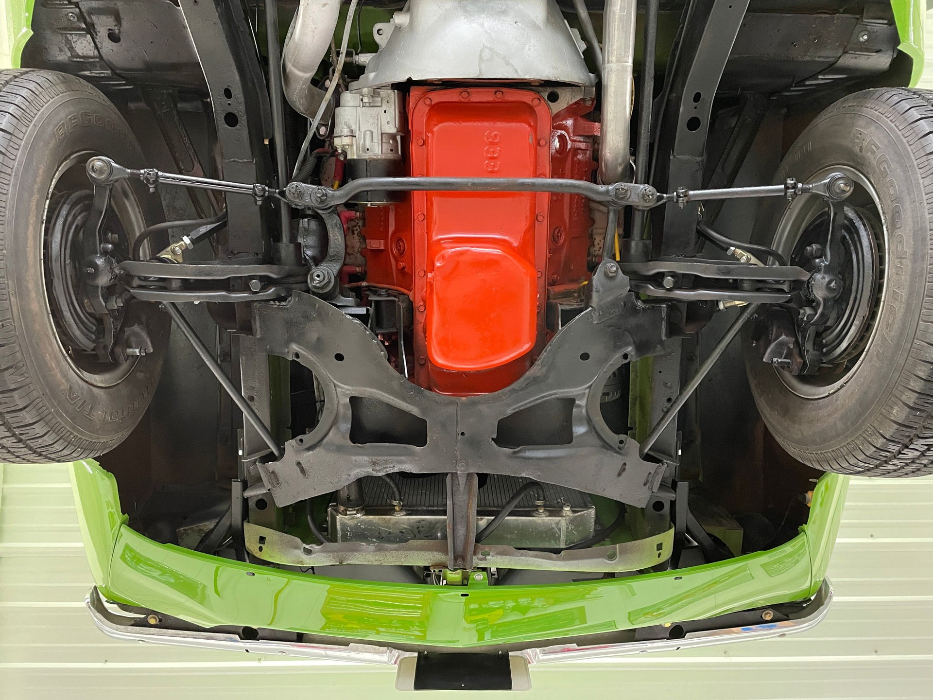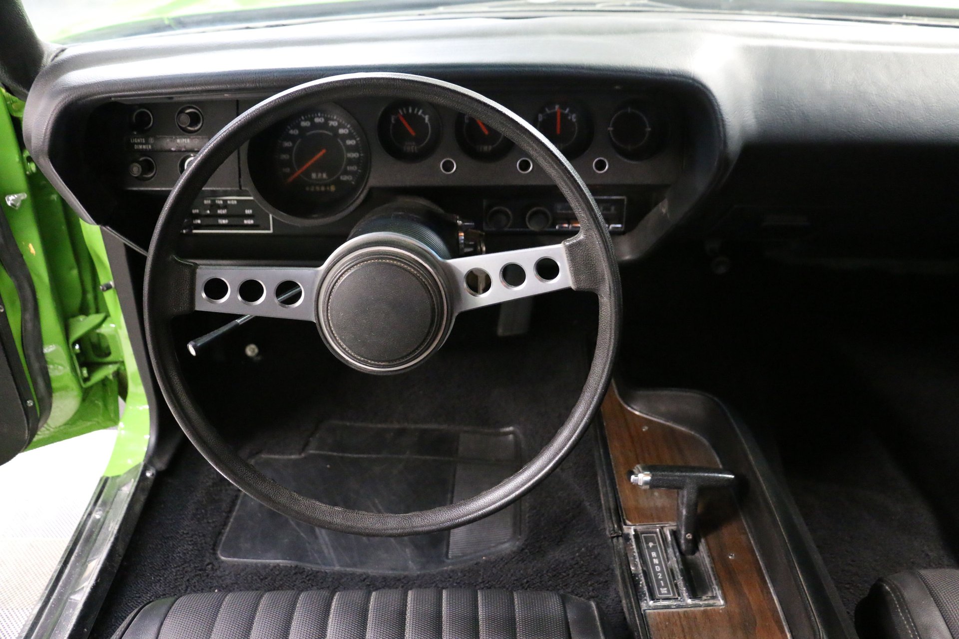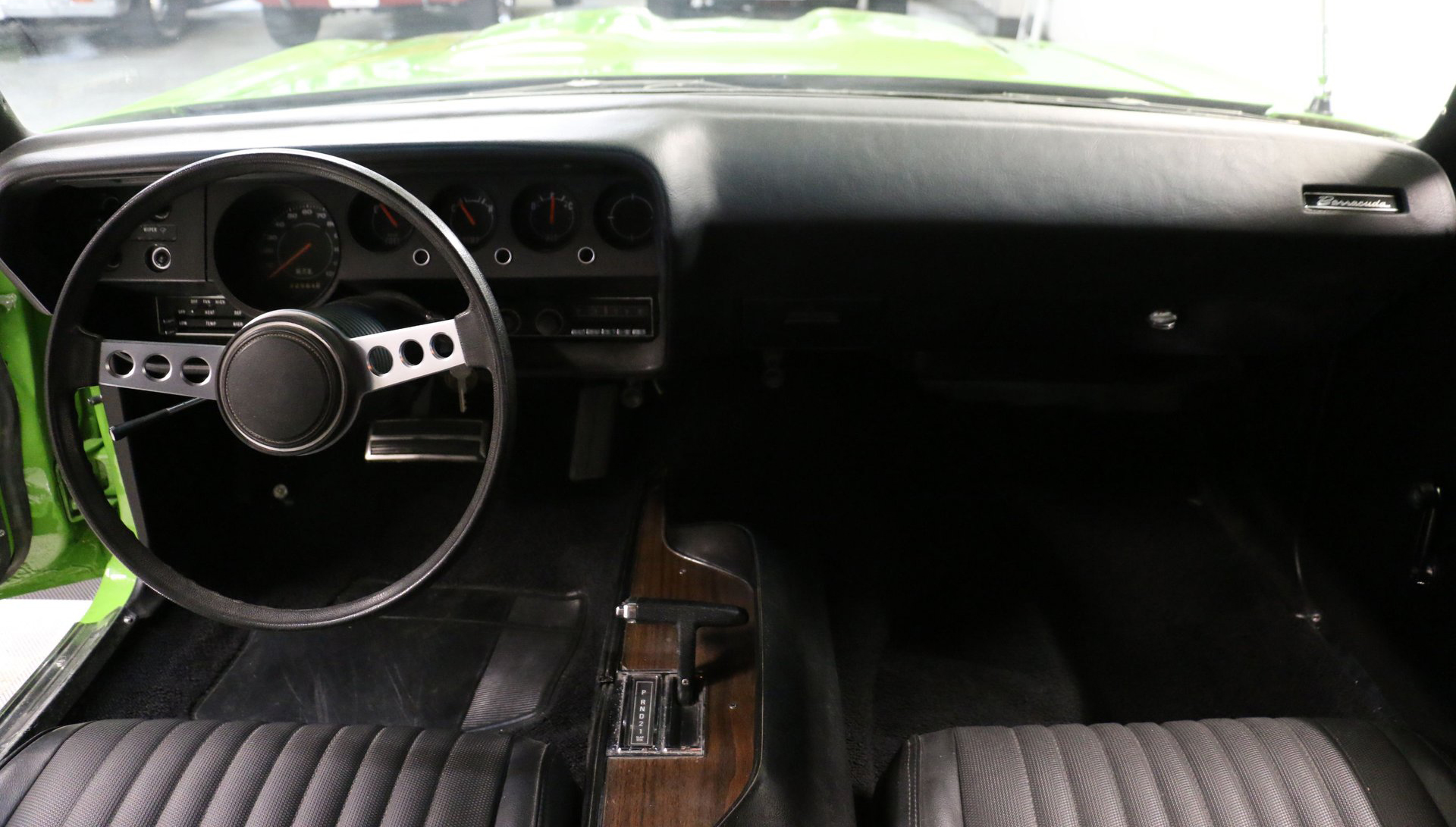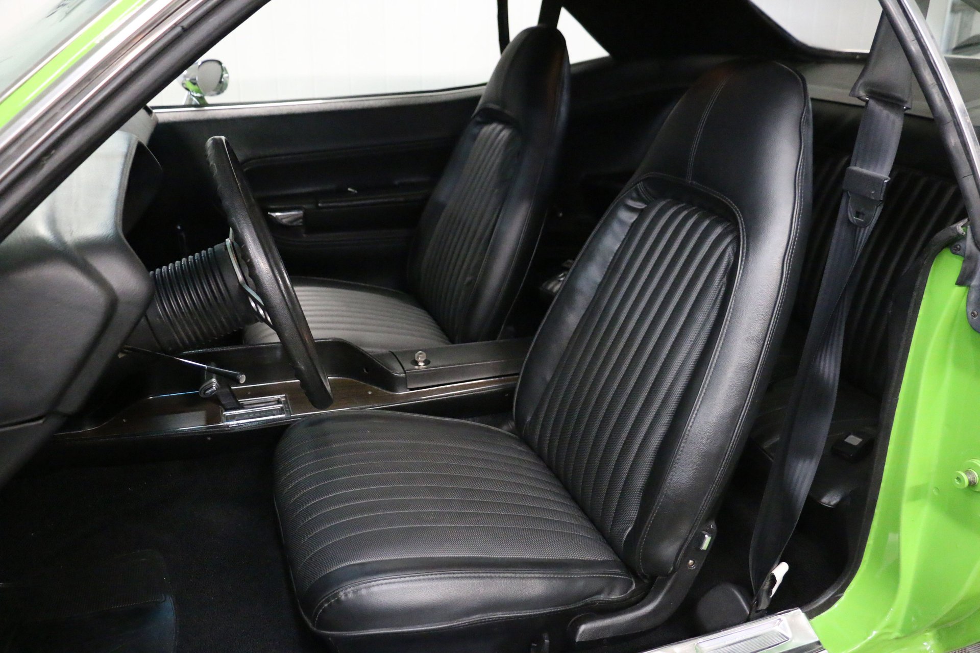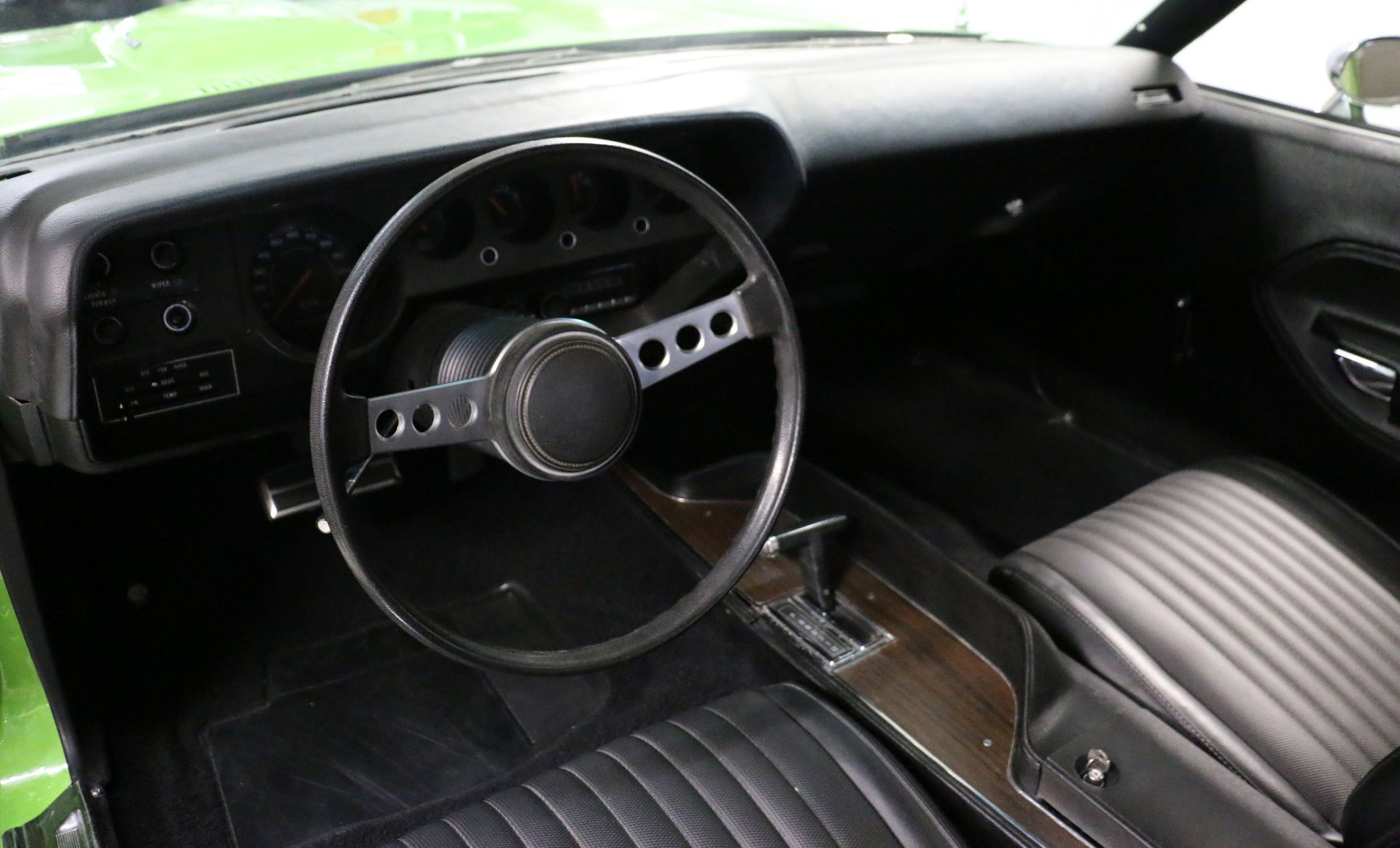 Here is a great example of a 1973 Plymouth Barracuda. Now powered by a Slightly built 1976 440 V8 paired to a rebuilt automatic transmission. The 440 is topped with an Edelbrock Performer Air Gap aluminum intake, Holley Street Avenger carb, aluminum radiator, and full length headers with all new exhaust. Very nice Lime green paint with 440 Billboard decal. Black interior with bucket seats and center console with Slap Stick shifter.