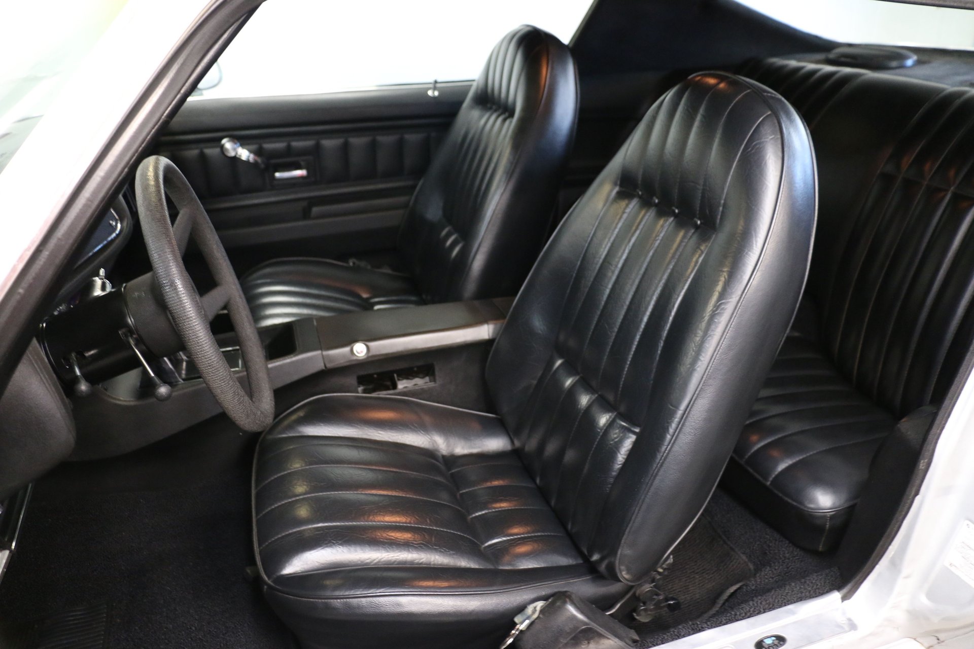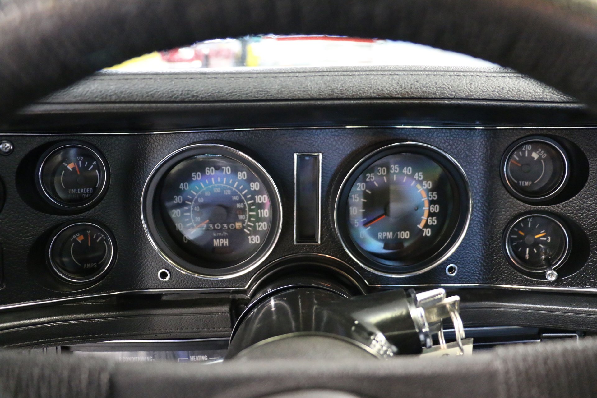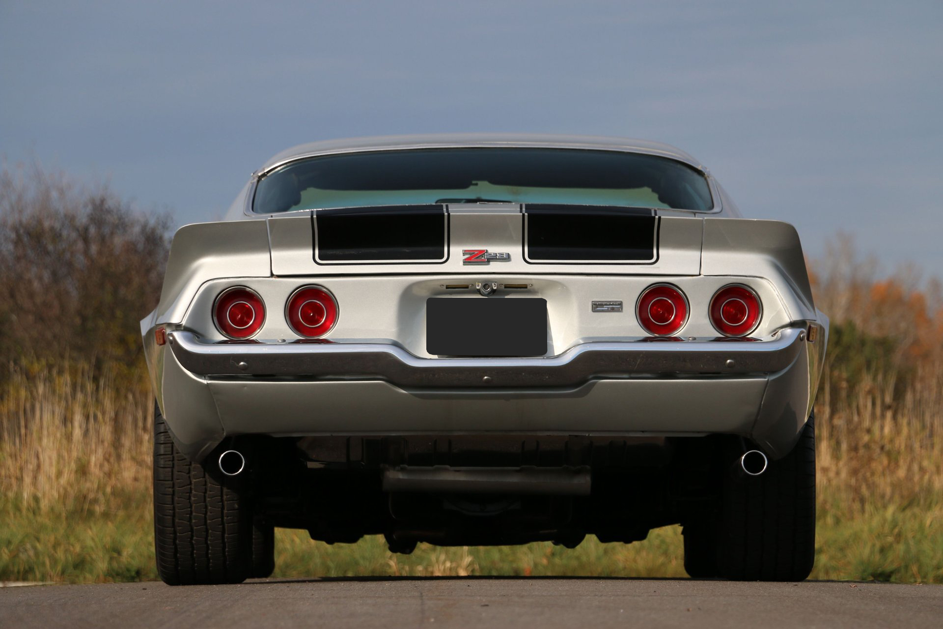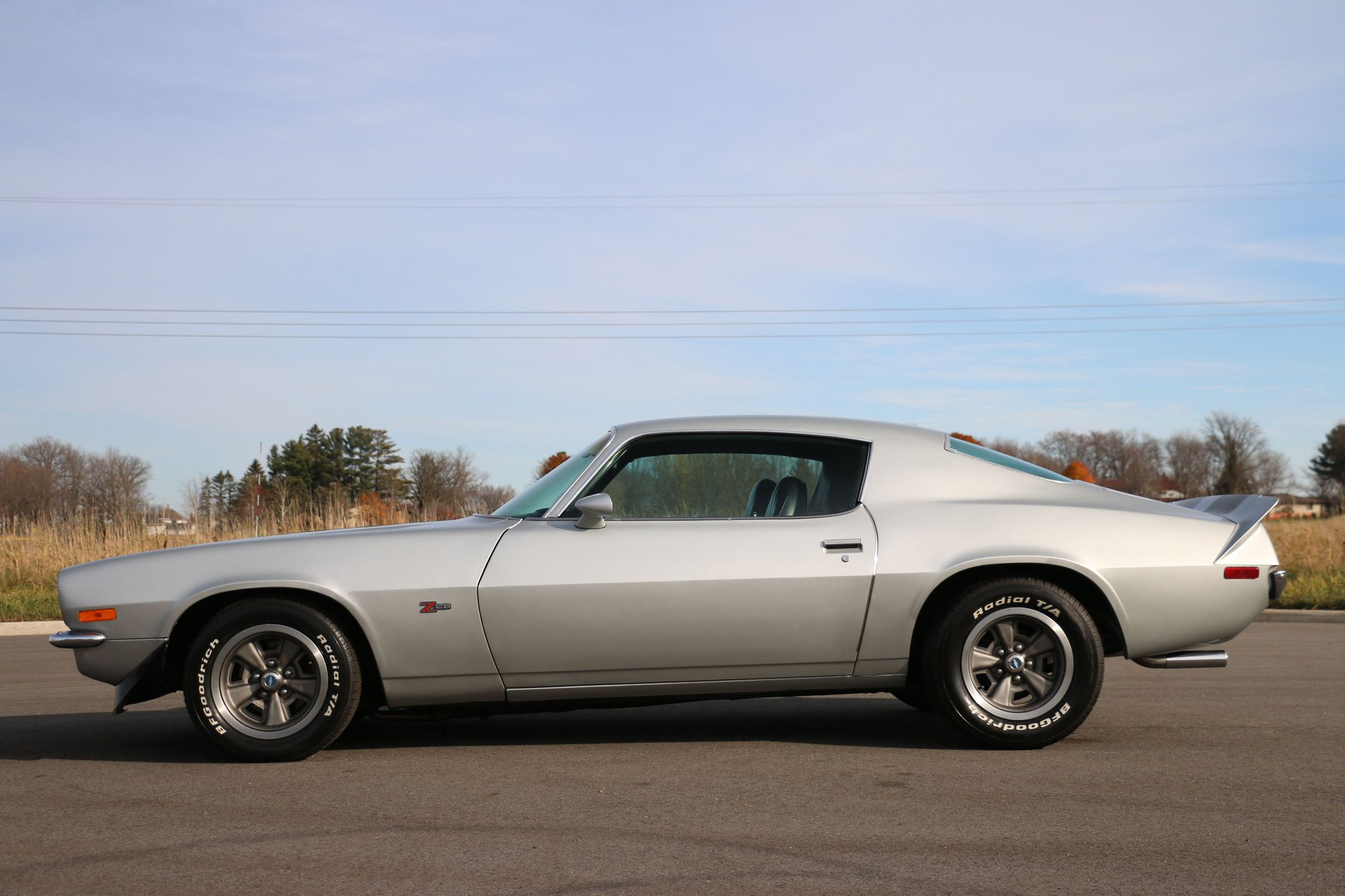 Here is a clean 1973 Split Bumper Camaro. Originally an LT Sport Coupe. Cortez Silver and black rally stripes with metal flake. Powered by a 350 small block paired to a TH350 3 speed automatic transmission. Equipped with power steering, power front disc brakes, Edelbrock carburetor, Edelbrock Performer EPS intake, HEI ignition, full length stainless steal headers and aluminum radiator. The interior is in great shape with aftermarket cloth shell headliner, new gauge bezel, tilt steering column, center console with staple shifter, factory tachometer and a Kenwood CD player.
