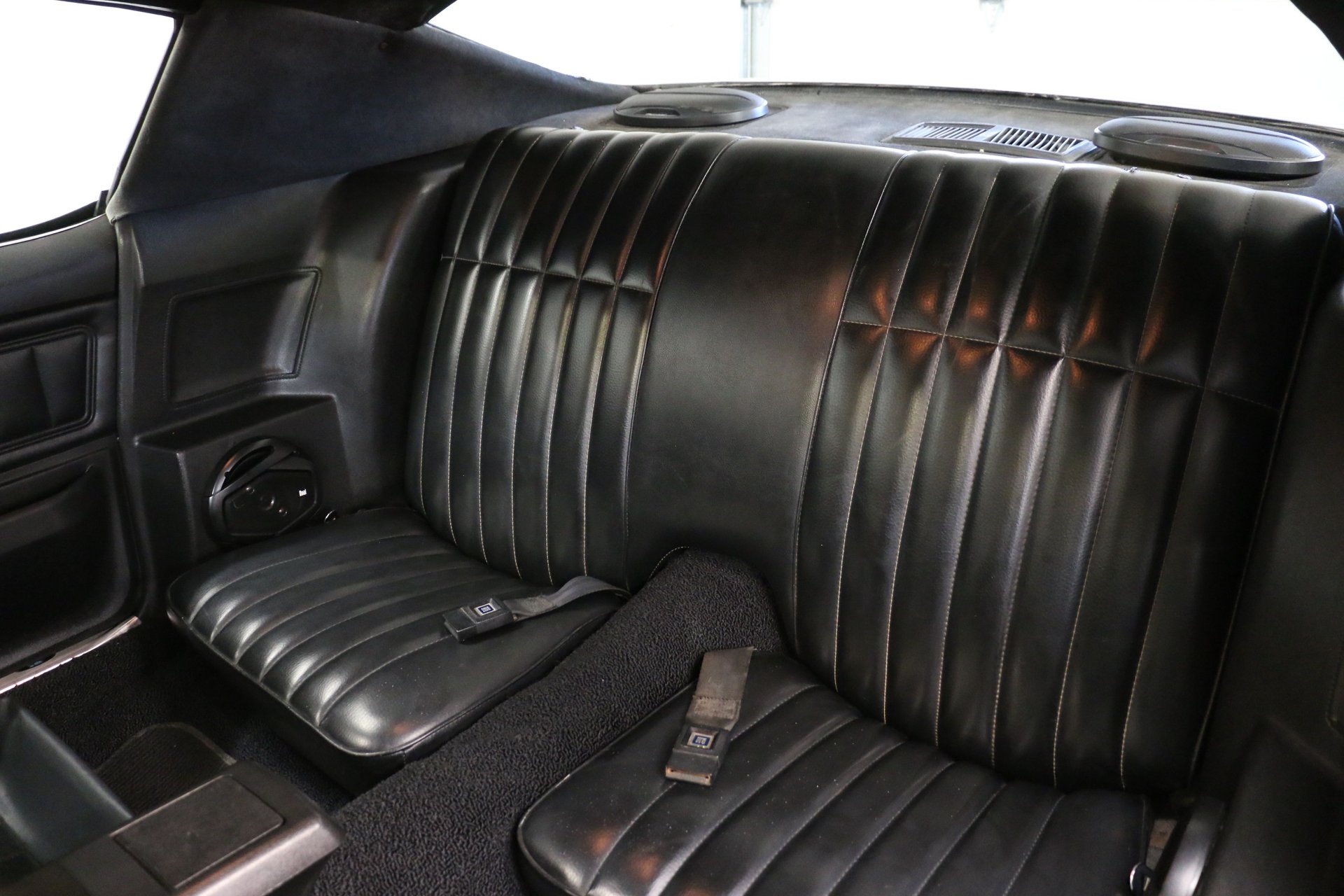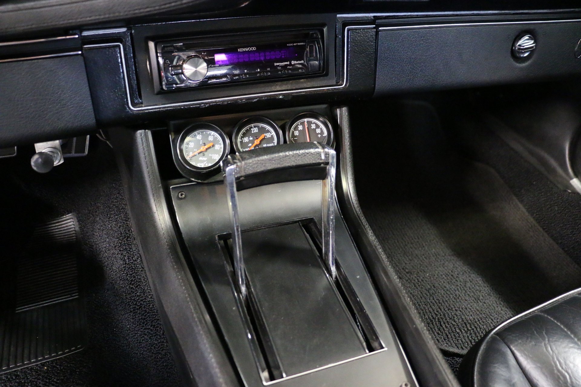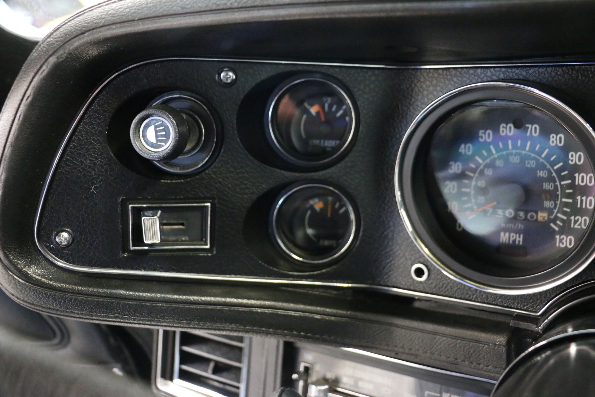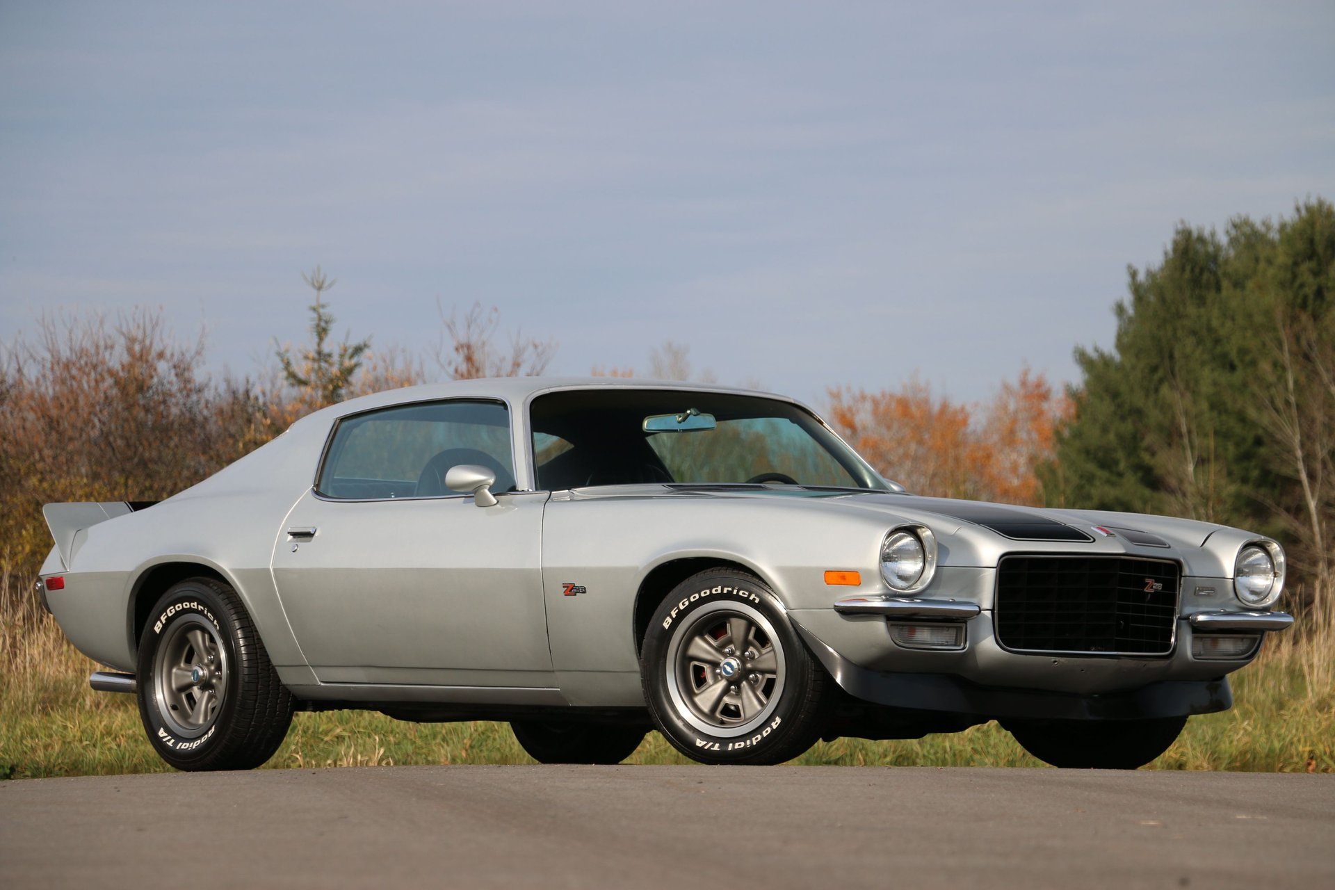Here is a clean 1973 Split Bumper Camaro. Originally an LT Sport Coupe. Cortez Silver and black rally stripes with metal flake. Powered by a 350 small block paired to a TH350 3 speed automatic transmission. Equipped with power steering, power front disc brakes, Edelbrock carburetor, Edelbrock Performer EPS intake, HEI ignition, full length stainless steal headers and aluminum radiator. The interior is in great shape with aftermarket cloth shell headliner, new gauge bezel, tilt steering column, center console with staple shifter, factory tachometer and a Kenwood CD player.