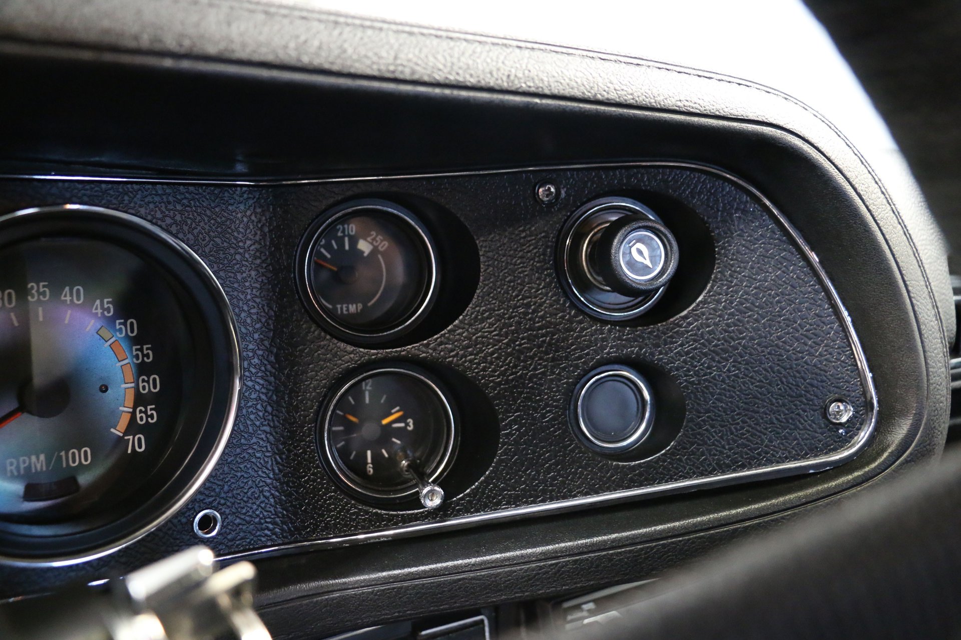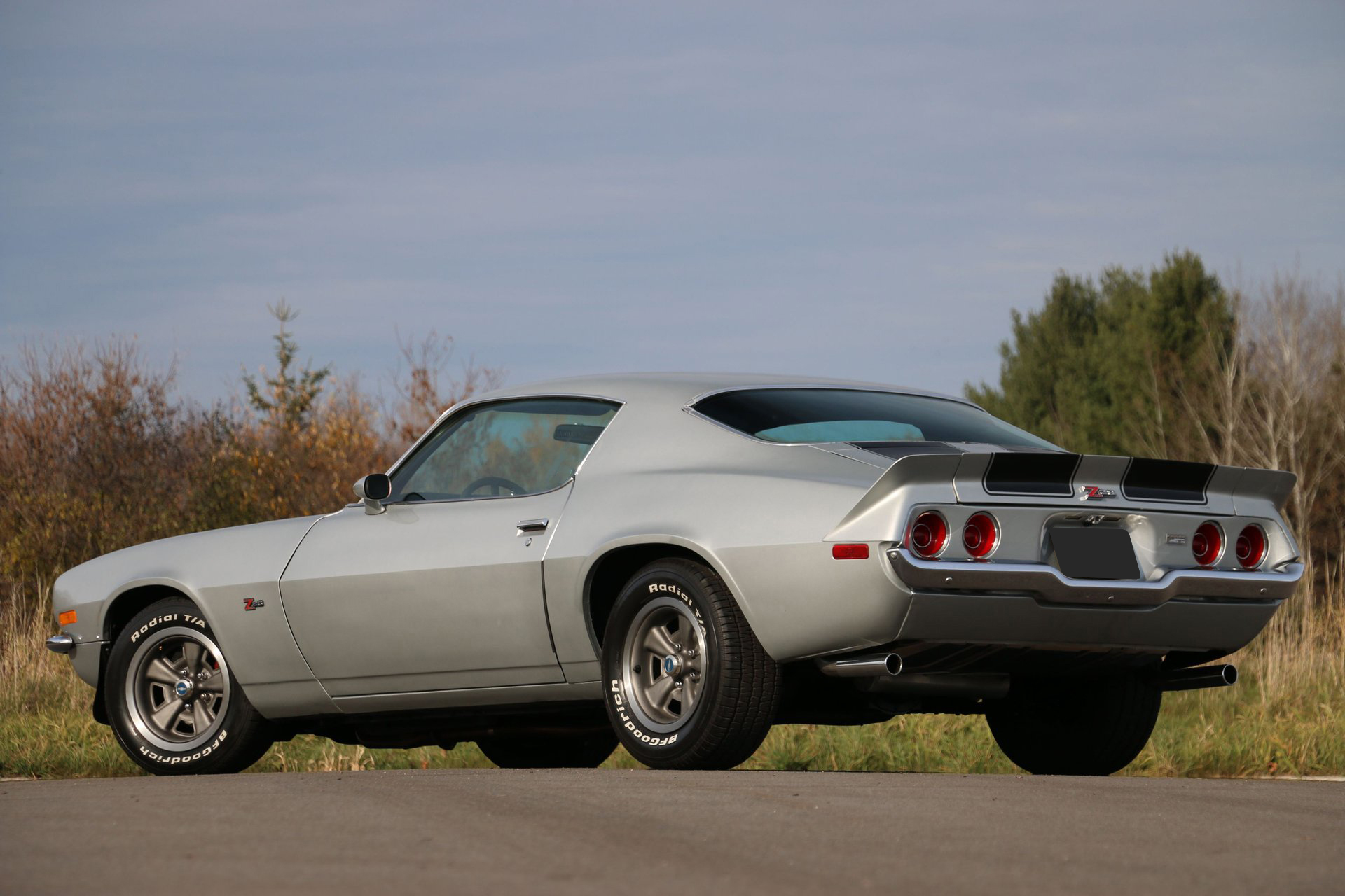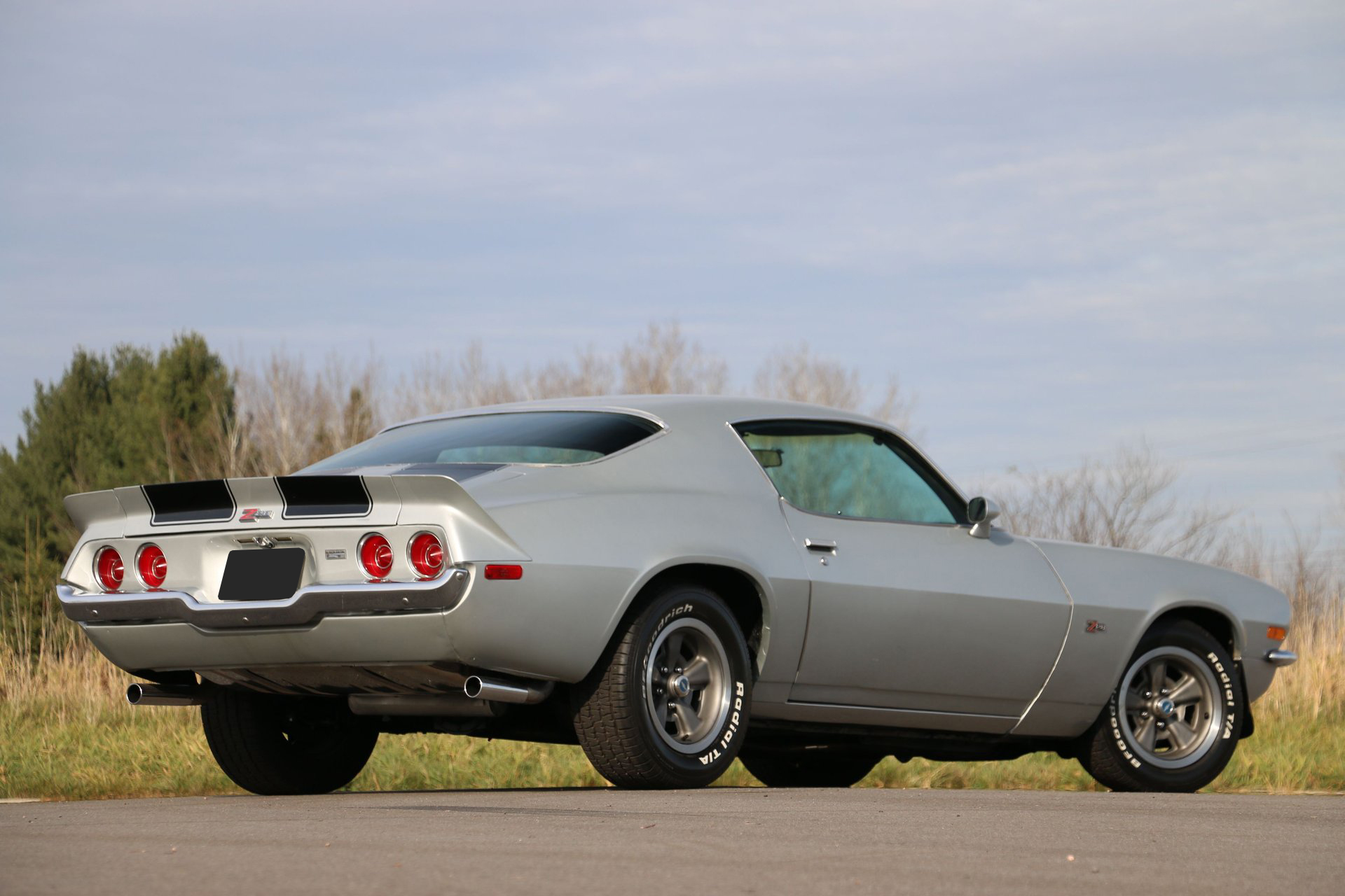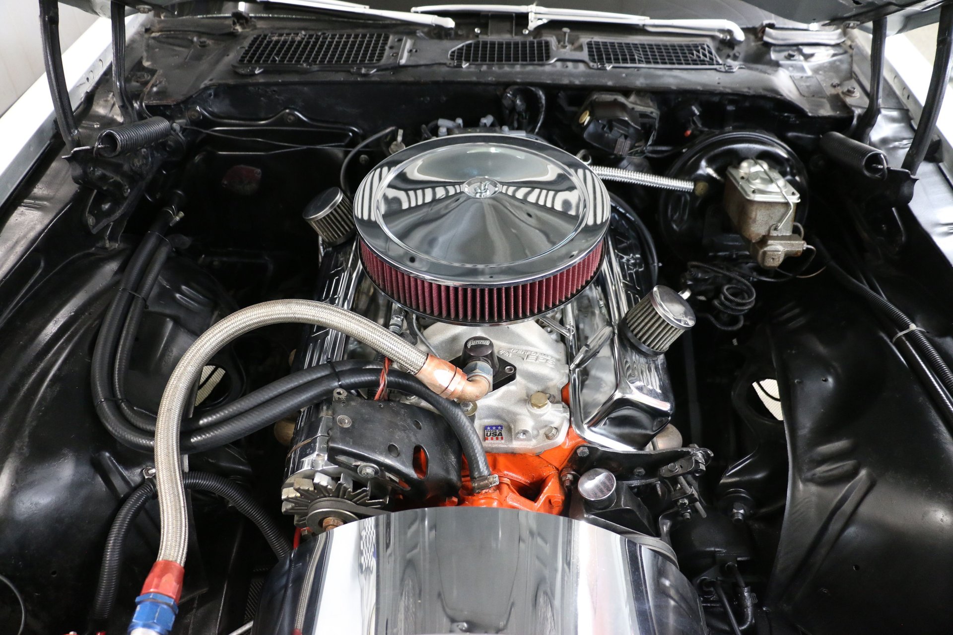 Here is a clean 1973 Split Bumper Camaro. Originally an LT Sport Coupe. Cortez Silver and black rally stripes with metal flake. Powered by a 350 small block paired to a TH350 3 speed automatic transmission. Equipped with power steering, power front disc brakes, Edelbrock carburetor, Edelbrock Performer EPS intake, HEI ignition, full length stainless steal headers and aluminum radiator. The interior is in great shape with aftermarket cloth shell headliner, new gauge bezel, tilt steering column, center console with staple shifter, factory tachometer and a Kenwood CD player.